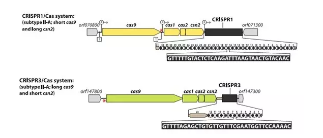 圖6. 兩種 II-A型CRISPR基因結(jié)構(gòu)圖