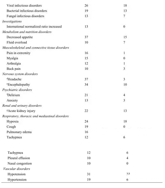 調查:血肌酐升高(7%),活化部分凝血活酶時間延長(6%)