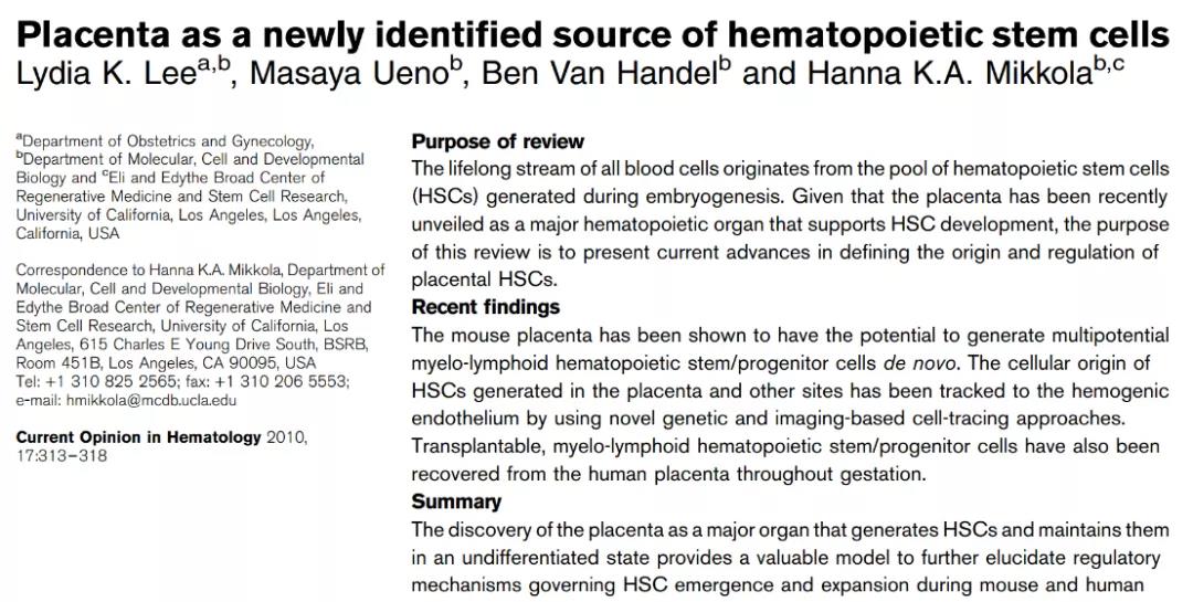 2010:胎盤是造血器官
