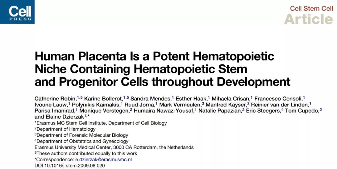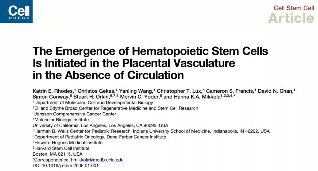 2008:造血干細(xì)胞最早在胎盤中出現(xiàn)