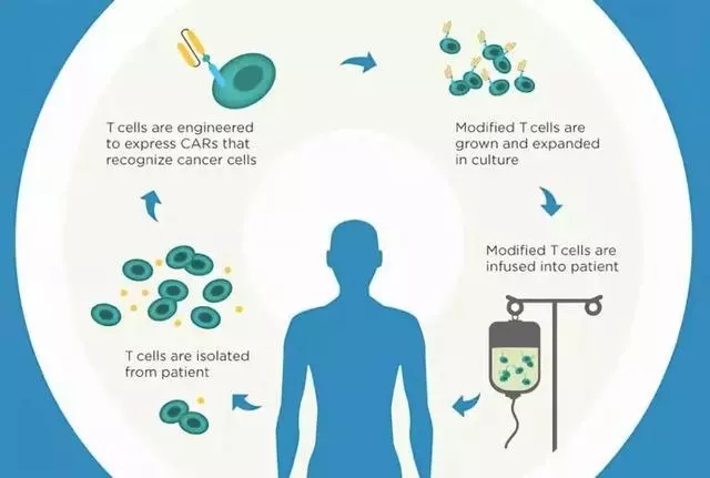 近兩年還有一個非常熱門的細胞治療的方法叫CAR-T技術(shù),簡單來說它就是一個人工制造的殺傷性細胞。我們知道細胞殺傷的時候,它要能夠找到腫瘤的靶標(biāo),但在人體的免疫系統(tǒng)當(dāng)中能夠精確識別腫瘤的這種靶細胞還是非常少的,所以科學(xué)家就考慮能不能給這些殺傷細胞裝上一雙眼睛、裝上一根天線讓它更準(zhǔn)確識別腫瘤細胞,這樣提高了殺傷的準(zhǔn)確性和效率都。