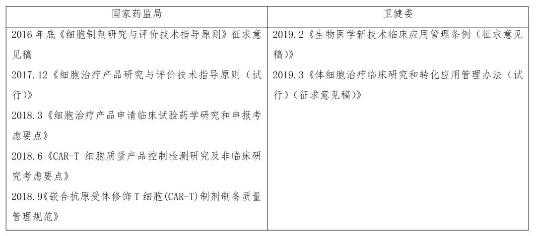 至2016年以來,CAR-T行業(yè)的監(jiān)管政策層出不窮。政策主要是來自國家藥監(jiān)局和衛(wèi)健委兩個(gè)層面的。