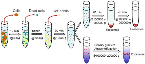 超速離心法是分離外泌體的標(biāo)準(zhǔn)方法。在4℃條件下依次以300G,2000G,10000G的轉(zhuǎn)速離心,依次去除細(xì)胞和細(xì)胞碎片等,再以100000G超速離心得到外泌體。但離心法每次處理的樣本量較小,而且反復(fù)高速離心會(huì)導(dǎo)致外泌體破裂影響質(zhì)量??筛鶕?jù)外泌體密度使用連續(xù)梯度蔗糖密度梯度離心法,蔗糖對(duì)細(xì)胞無毒,粘度不高且pH中性,所獲外泌體純度高,但含有難以去除的高密度化學(xué)物,不適合臨床應(yīng)用。超濾法用孔徑小于100nm的超濾膜短時(shí)間低速離心就可以分離得到外泌體,但超濾時(shí)施加的壓力比較大,導(dǎo)致體積大的囊泡變形和破裂。
