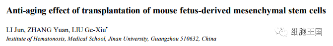 2010年暨南大學(xué)醫(yī)學(xué)院血液病研究所李軍研究小組,在間充質(zhì)干細胞抗衰老作用的動物實驗中發(fā)現(xiàn),干細胞移植組存活日期明顯長于對照組,移植3個月后評價心功能的指標,心脾質(zhì)量指數(shù),器官組織學(xué)衰老程度評分結(jié)果以及血生化指標皆優(yōu)于對照組,證實移植干細胞能有效地延緩衰老進程。