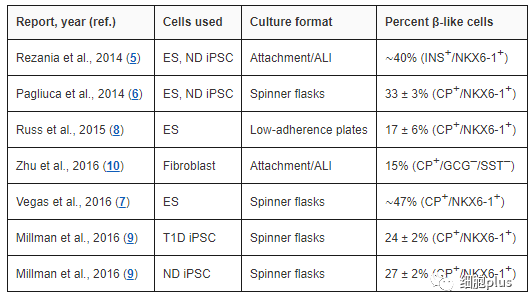 在實(shí)驗(yàn)室將干細(xì)胞轉(zhuǎn)化為β細(xì)胞的過程是復(fù)雜的。在實(shí)驗(yàn)室工作的科學(xué)家首先必須確定如何復(fù)制胰腺在人體中的發(fā)育方式,由于對人類胎兒發(fā)育的了解有限,干細(xì)胞生物學(xué)家進(jìn)行了許多研究,以確定調(diào)控人類β細(xì)胞發(fā)育的特定基因。在過去的15年中,如下圖中的多個研究小組已經(jīng)獨(dú)立地利用這些研究從干細(xì)胞中成功地制造了β細(xì)胞,為基于干細(xì)胞的t1d治療創(chuàng)造了一條前進(jìn)的道路。