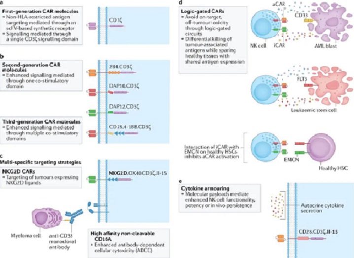 嵌合抗原受體(CAR)能修飾T細胞,搞出大獲成功的CAR-T療法,那也可以把NK細胞“CAR一下”,讓NK細胞能夠識別癌細胞表面抗原,而且與CAR有關(guān)的抗原非依賴性信號(tonic signaling),也可能更好地激活NK細胞的抗腫瘤活性。